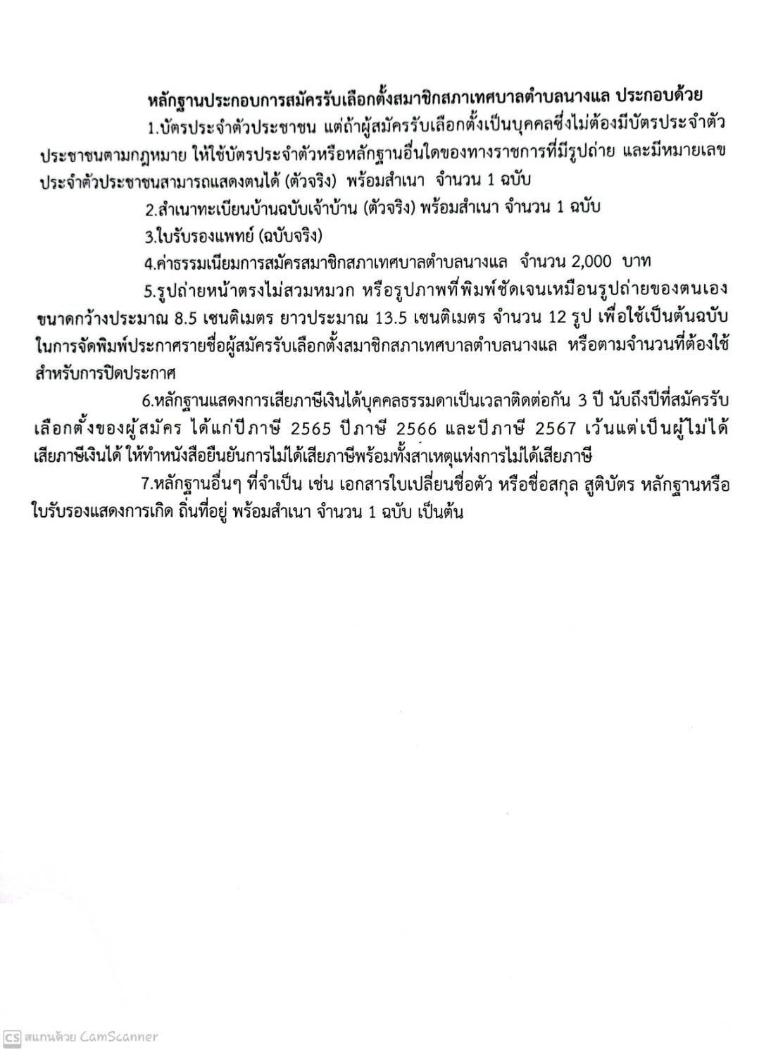 หลักฐานประกอบการรับสมัครรับเลือกตั้งสมาชิกสภาเทศบาลตำบลนางแล