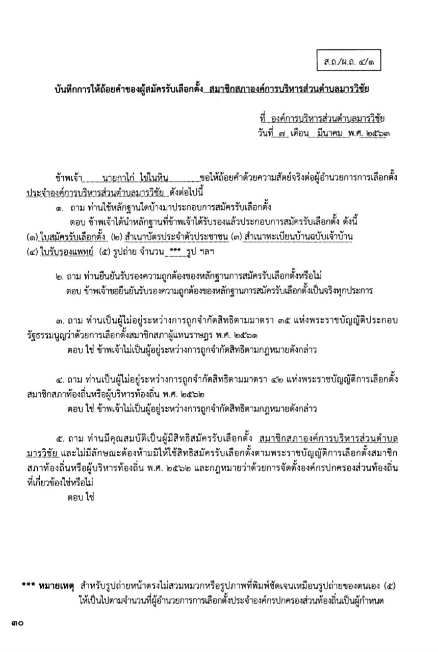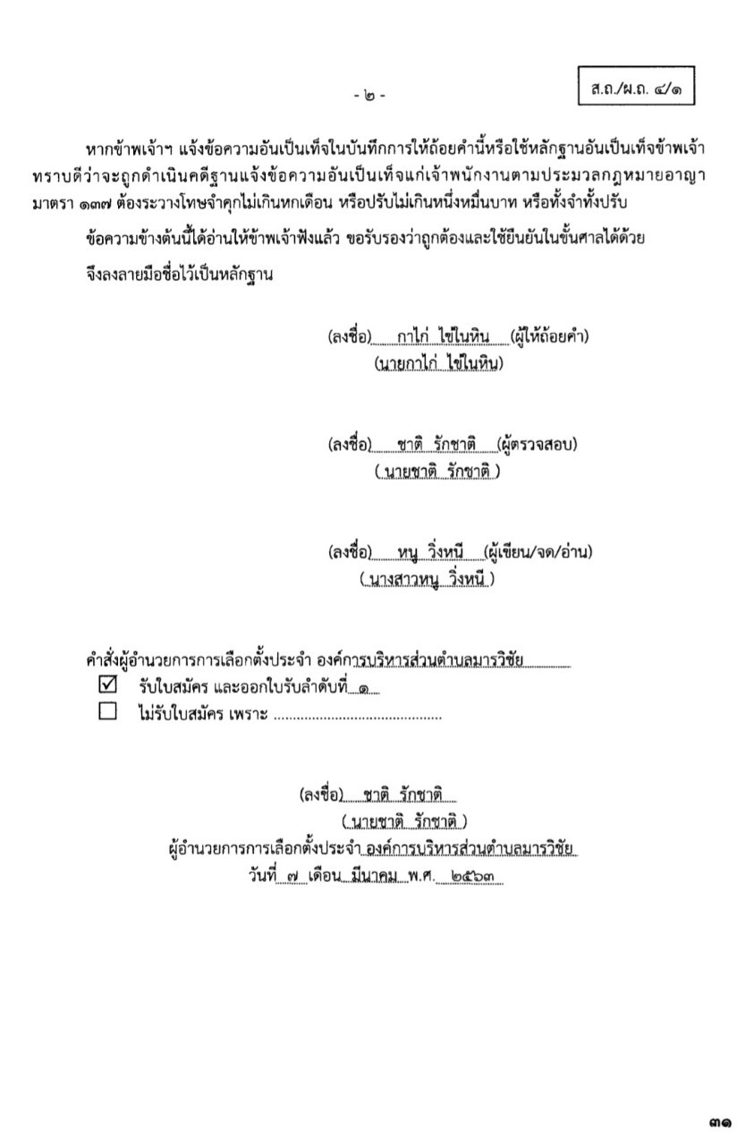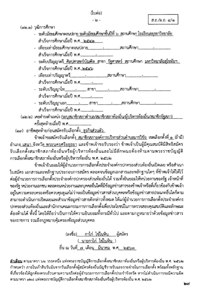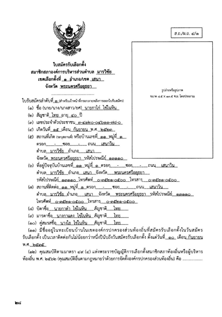 ตัวอย่างการกรอกใบสมัครรับเลือกตั้งสมาชิกสภาเทศบาล